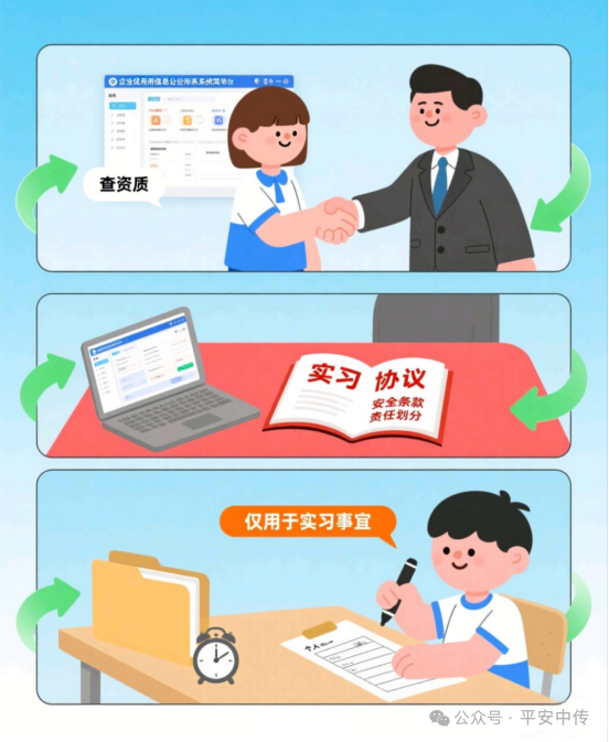 1、实习前做好准备,筑牢安全基础:提前深入了解实习单位的性质、业务范围和工作环境,确认其与自己的职业规划相符,务必与单位签订规范的实习协议。
