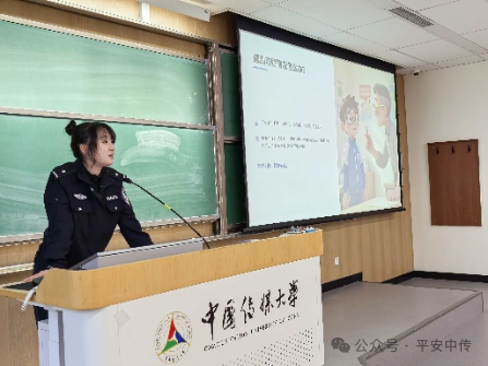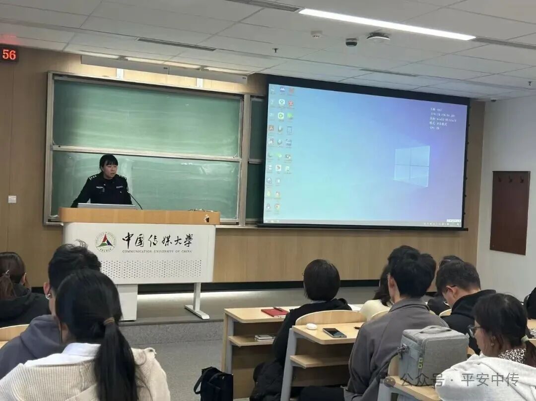 近日,为进一步提高师生反诈防骗意识与自我保护能力,维护校园安全稳定,保卫部(处)、法治与内控管理办公室联合三间房派出所、公共交通安全保卫总队四惠站派出所,走进电视学院、计算机与网络空间安全学院、动画与数字艺术学院、人文学院及马克思主义学院,开展“安全教育送上门”系列活动。