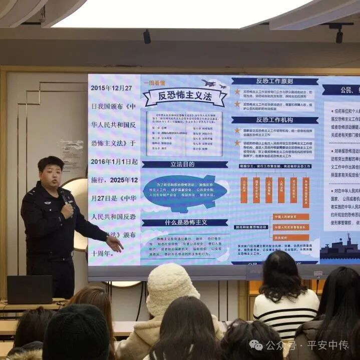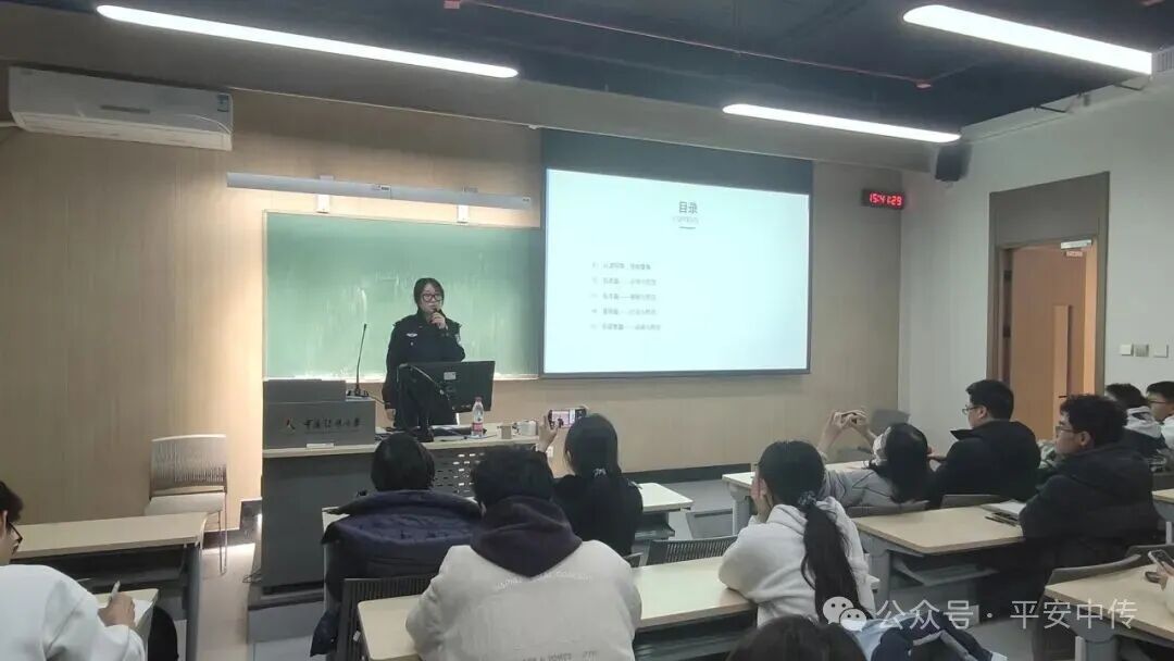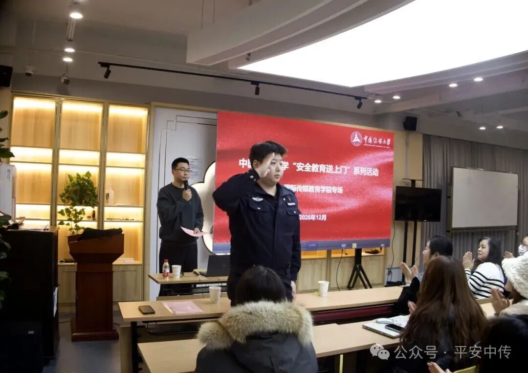 为持续提升师生安全意识,巩固校园安全防线,保卫部(处)携手三间房派出所、公共交通安全保卫总队四惠站派出所,把“安全教育送上门”系列讲座今年的收官课堂送进国际传媒教育学院、播音主持艺术学院与信息与通信工程学院,用“安全教育课”为师生拧紧岁末“安全阀”。