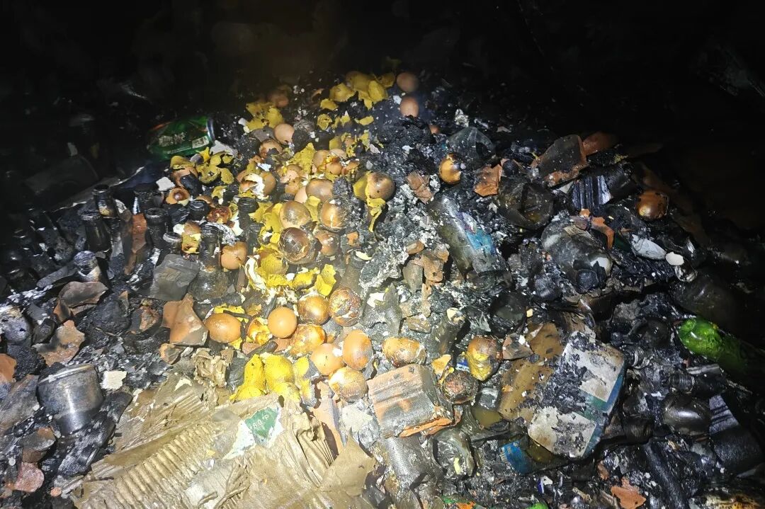 被烤得开裂的鸡蛋。图源:宁波消防