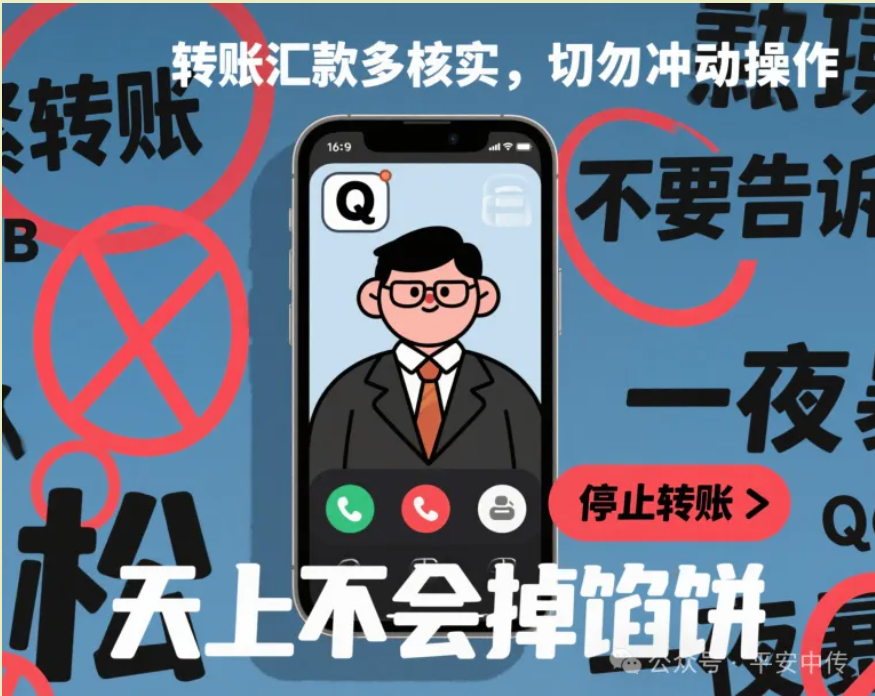 方式核实对方身份,确认事情真实性后再操作;遇到对方催促转账或要求禁止转告他人等情况,更要加倍谨慎,切勿被情绪左右。