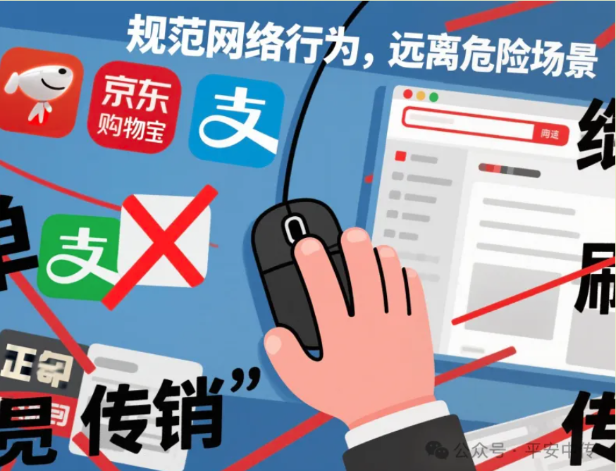 2.规范网络行为,远离危险场景。选择正规平台进行网购、游戏交易等操作,不通过第三方社交账号进行资