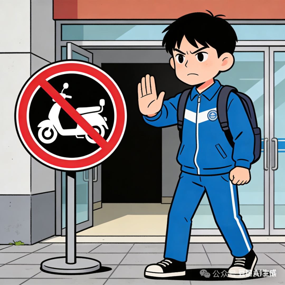 好安全头盔,不逆行、不违规载人载物;雨雪天气出行,注意路面湿滑,减速慢行,谨防摔倒。