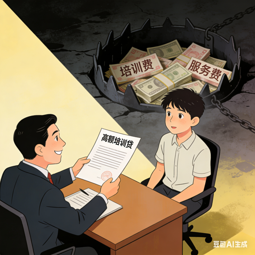 不法企业以高薪招聘、内推入职为诱饵,将求职者骗至公司后,声称需要先参加培训、考证才能上岗,借此收取高额培训费。更有甚者,诱导求职者在网贷平台办理贷款支付培训费,导致工作没找到,先背上沉重债务。